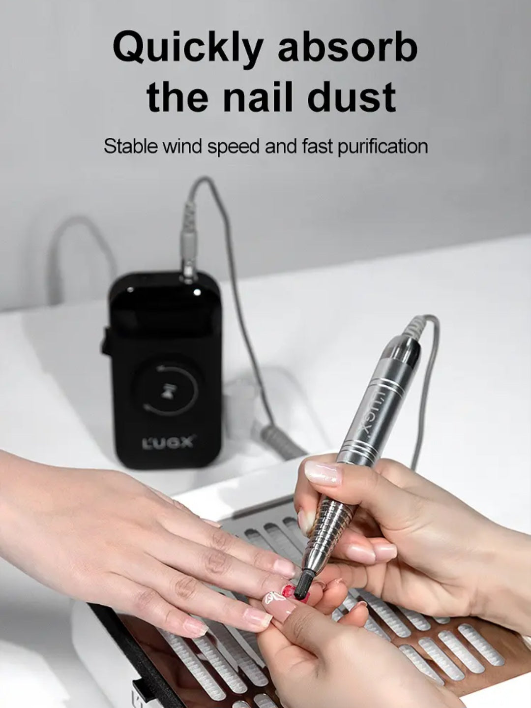 The LUGX 608 Custom Logo 40W Electric Nail Dust Collector is a professional vacuum cleaner designed for nail salons, featuring high power for efficient performance. Its sleek white design and strict quality control ensure a premium experience from usage to packaging.